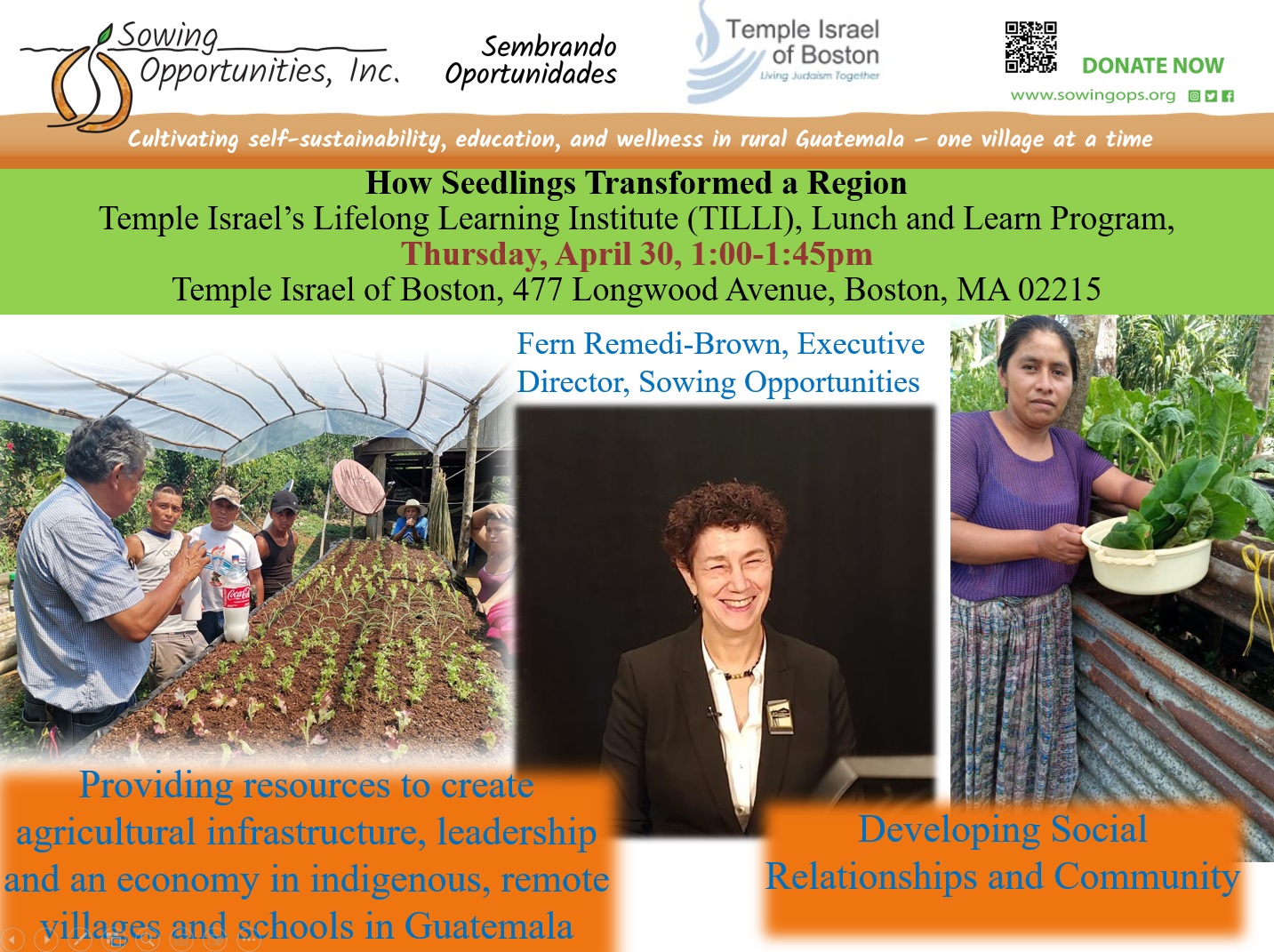 Thursday, May 16, 2024: 2:00 – 3:00 p.m. Presentation on Sowing Opportunities’ work to Interfaith Clergy Meeting at Temple Beth Shalom, Melrose, MA